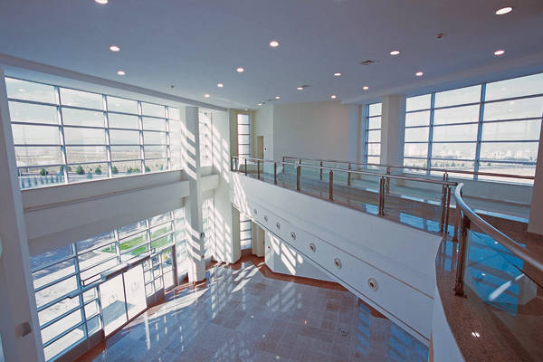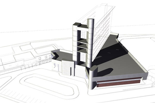 The design united the three buildings through a common podium, that housed the outpatients clinics and emergency, as well as provided a second core that includes protected stairs and visitors elevators; while the main tower was renovated and the site circulation revamped.