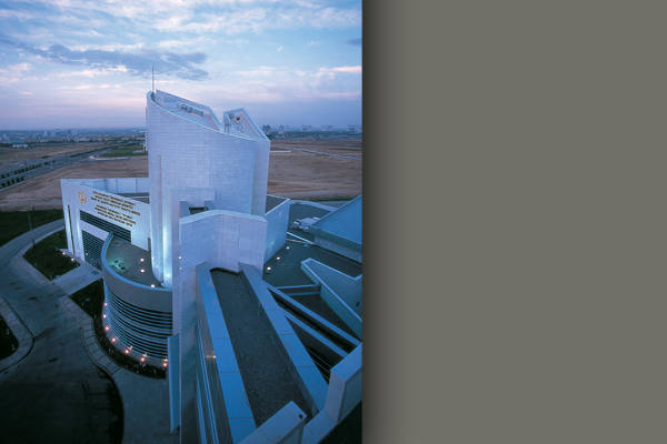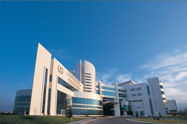 The aim of the hospital designer was to create an architectural statement commensurate with the aspirations of the people of Turkmenistan.